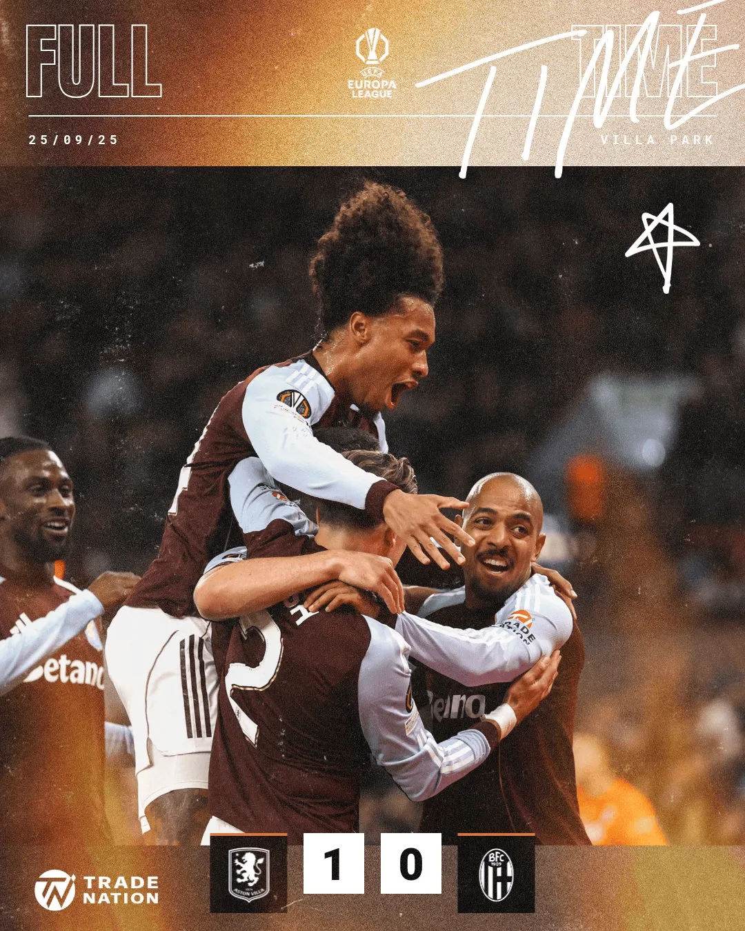 虎扑09月26日讯 在刚刚结束的欧联联赛阶段首轮的比赛中,维拉在主场1-0击败来访的博洛尼亚,拿到了球队本赛季各项赛事的首场胜利。